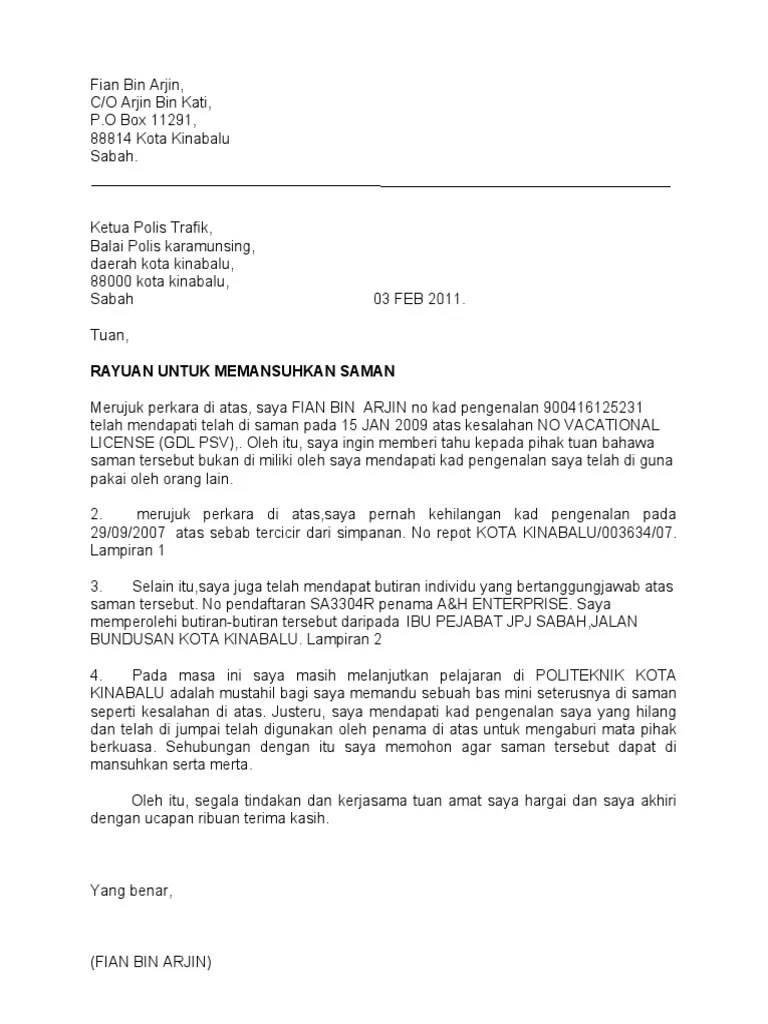 Surat rayuan saman trafik pdf. Semakan tahun no plat kenderaan surat rasmi bantuan bina jambatan via ….